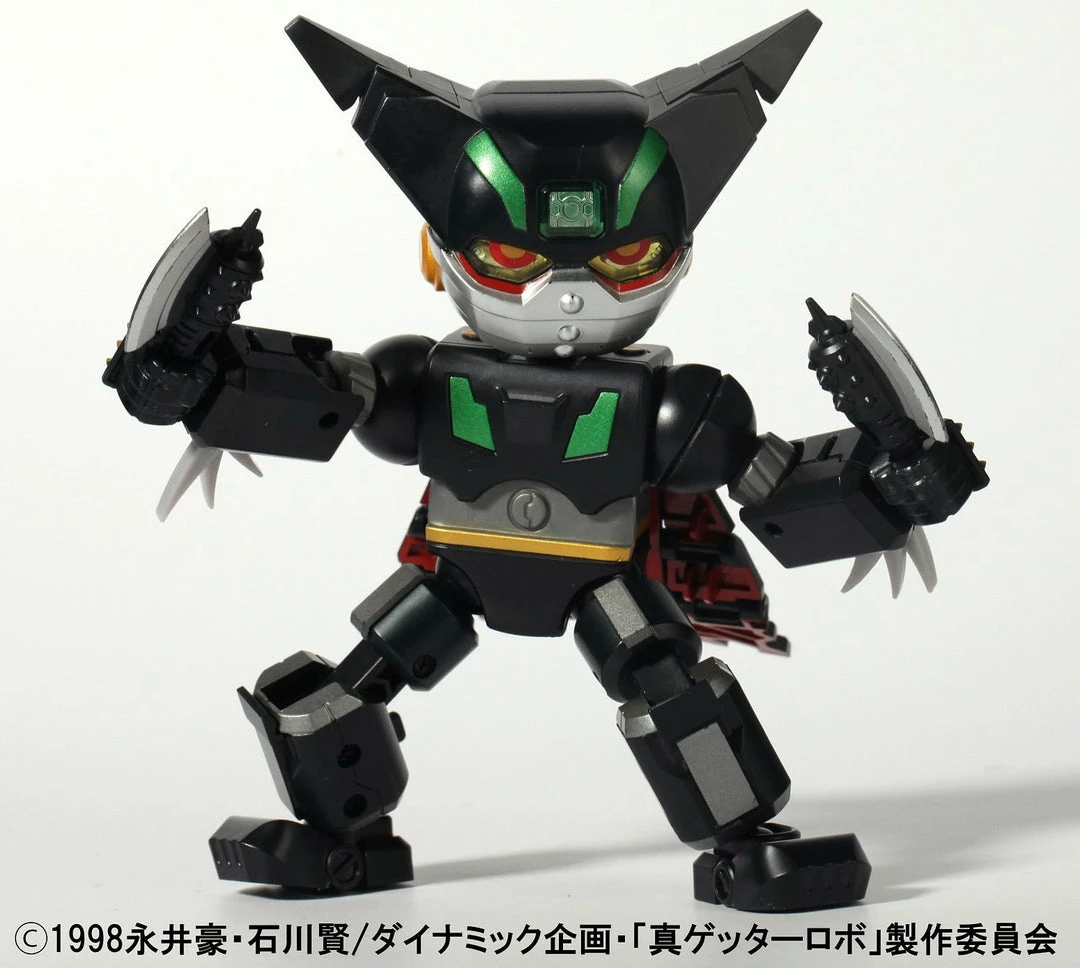 As seen in “Getter Robo Armageddon,” here’s the Black Getter , now small and cute thanks to 52TOYS! Part of their Megabox lineup, he folds up into a 5cm-square cube when he’s not fighting evil. He’s armed with his Getter Tomahawk and Getter Machine Gun, too.