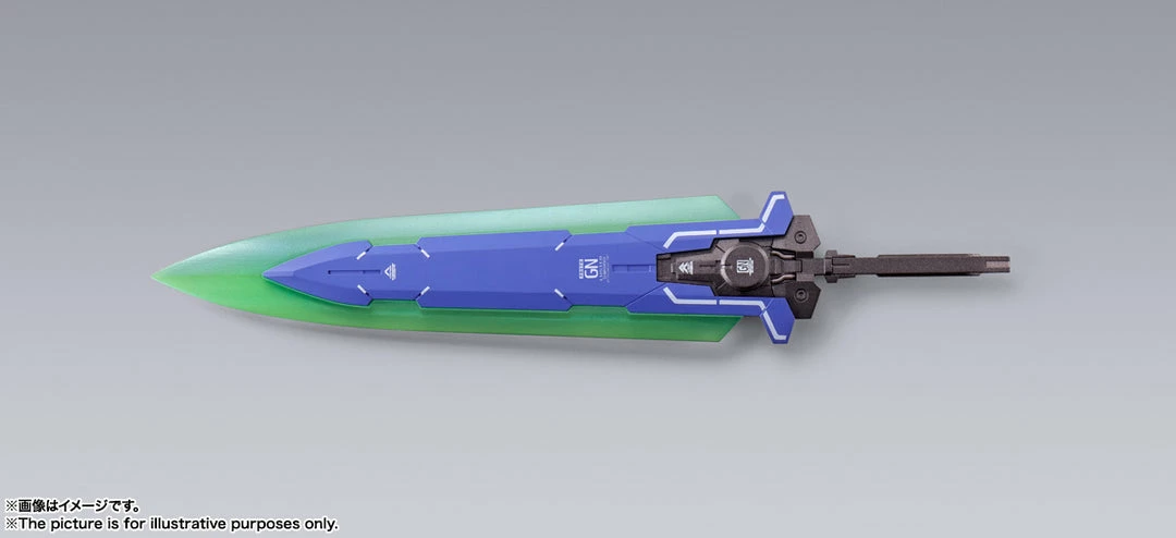 Featuring new design work by “Mobile Suit Gundam 00” series designer Kanetake Ebikawa, this set includes a GN Raster Sword and GN Devise Backpack. The pack is compatible with optional accessories that will be sold in the future.