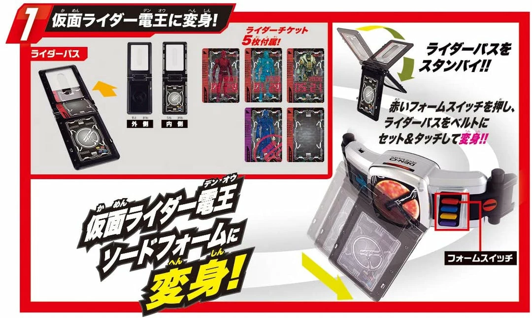 From the Kamen Rider Den-O tokusatsu comes this 1/1 scale Den-O belt! To celebrate the 20th Anniversary, this version comes with 5 Rider Tickets and 1 Rider Pass used by Den-O to transform!