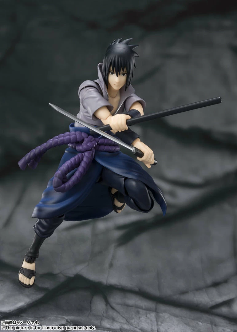 From the Naruto: Shippuden anime, Uchiha Sasuke joins the S.H.Figuarts line! Standing almost 6 inches tall, Uchiha is highly articulated and includes several hand options as well as his signature sword.