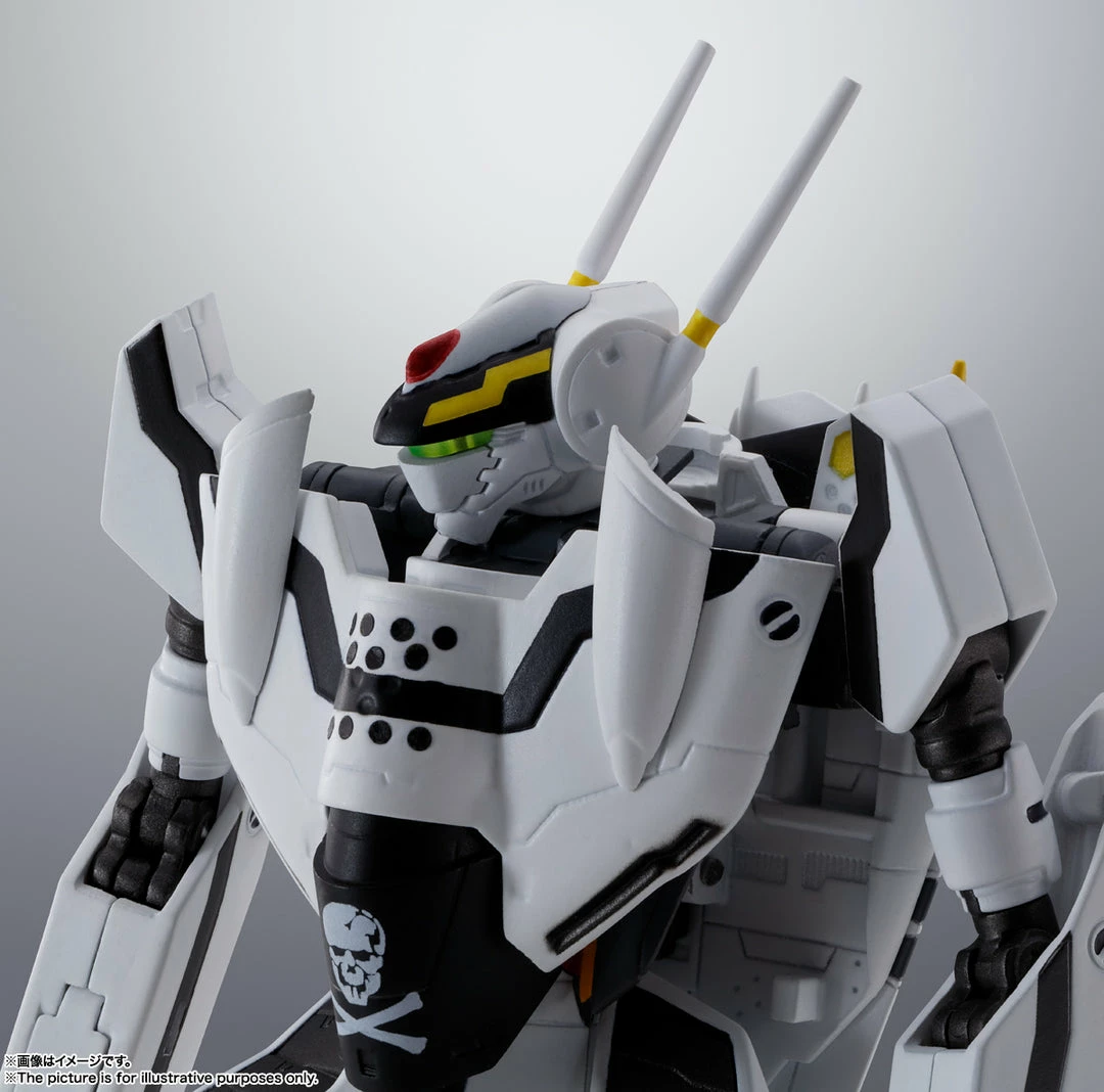 From the 2002 direct-to-video anime “Macross Zero,” Roy Focker’s VF-0S Phoenix joins the Hi-Metal R series! Featuring a full transformation into all three modes: Fighter, Gerwalk, and Battloid, it also includes FAST packs and air-to-air missiles. Decorated with Focker’s personal colors and skull marking!
