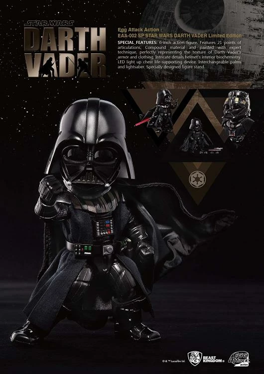 Beast Kingdom Toys is proud to present Egg Attack Action Star War Series’ fearsome Darth Vader action figure, from Star Wars: Episode V. With 21 points of articulation and constructed with compound material, the figure is expertly painted and reproduces the texture of Darth Vader’s armor and clothing.
