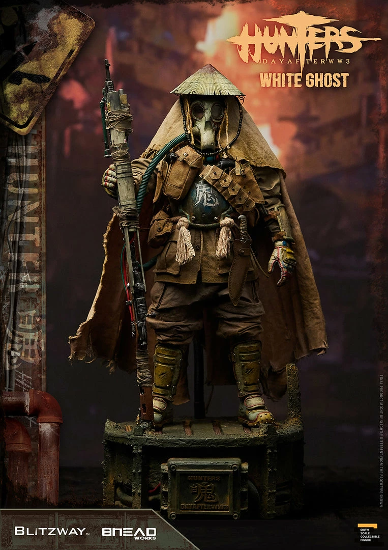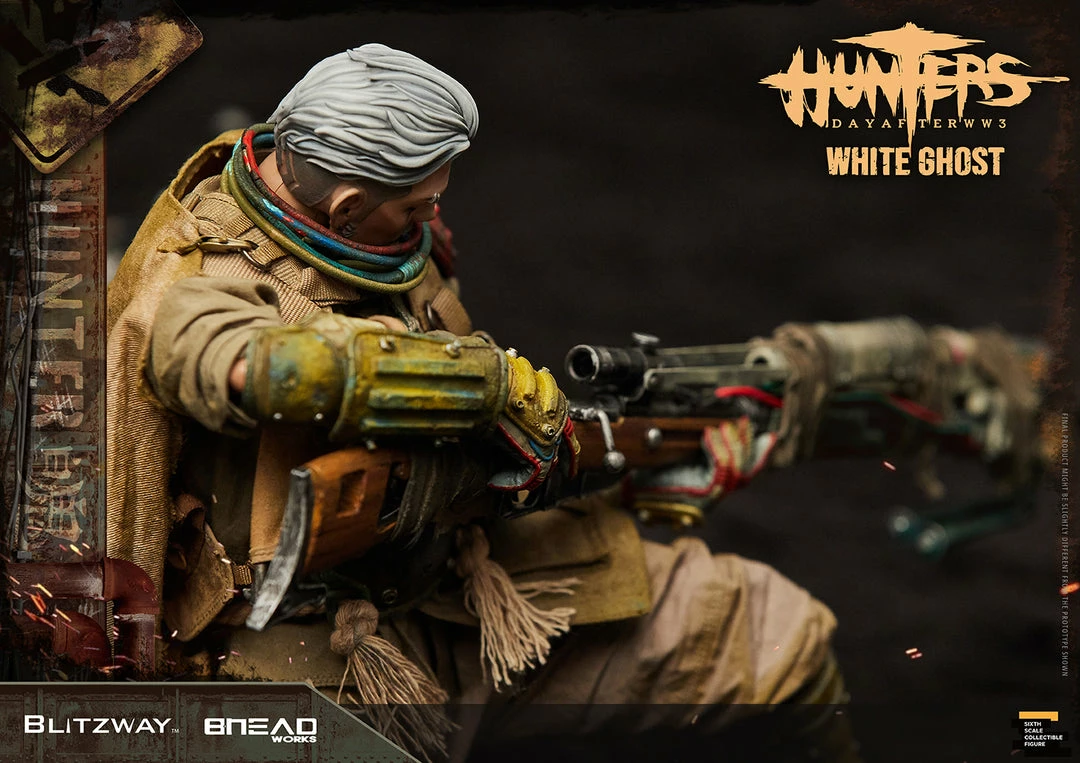 Blitzway is extremely thrilled to officially launch the #4 character of BHEADworks’ original design figures ‘White Ghost’ from Hunters: Day After WWIII. This newly developed original design features an intricate head sculpt and make-up, realistic equipment, sophisticatedly tailored and designed outfits, over 30 points of articulation, and a highly detailed polystone diorama base.