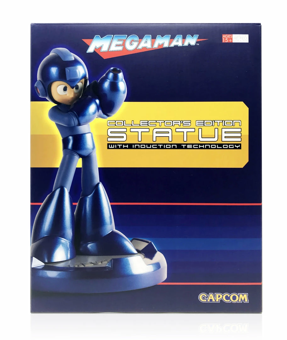 The Blue Bomber is faithfully recreated in this fantastic 10-inch statue featuring a chrome resin finish, a 6-inch diameter base features an inscription of the Mega Man logo with LED spotlights, plus his Buster and helmet lights up via induction technology when you stand the figure on the base.