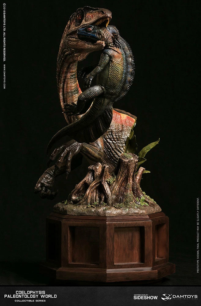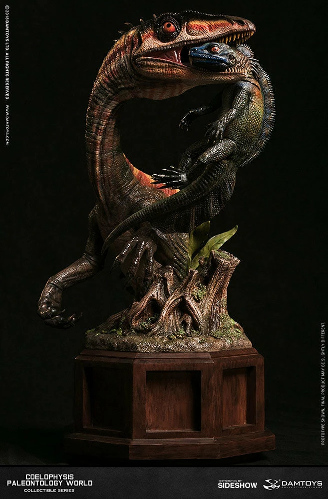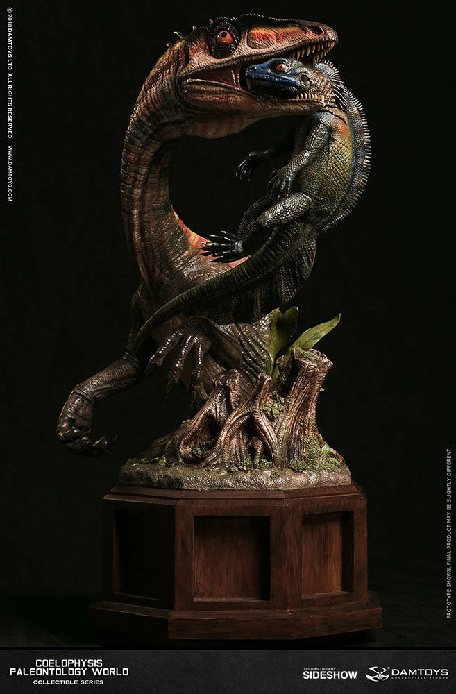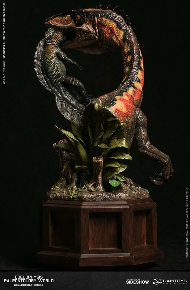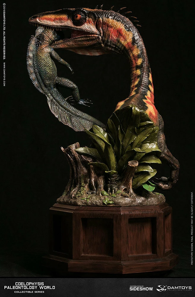 Coelophysis is a small, carnivorous, bipedal dinosaur in North America. It is one of the earliest known dinosaurs and the second to have entered space. With research-based accuracy, the Damtoys design team brings you the visual image of the statue, where we imagined the Coelophysis having just caught a prey in the woods since its favorite food is lizards. Having designed this on accurate basis, we likewise offer two color renderings.