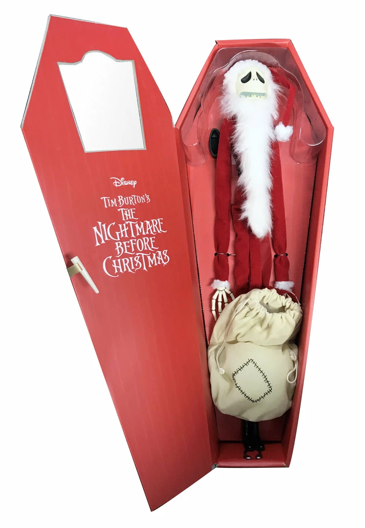 Nightmare Before Christmas Santa Jack Unlimited Coffin Collection Doll A Diamond Select Toys release! The star of the stop-motion animation holiday classic Tim Burton’s The Nightmare Before Christmas is back, and Christmas will never be the same! With an all-new head sculpt, this unlimited, single-packed 16″ doll of Jack Skellington in his Santa Claus outfit features a real cloth costume over a fully poseable body, with 12 points of articulation. Packaged in a coffin-shaped window box!