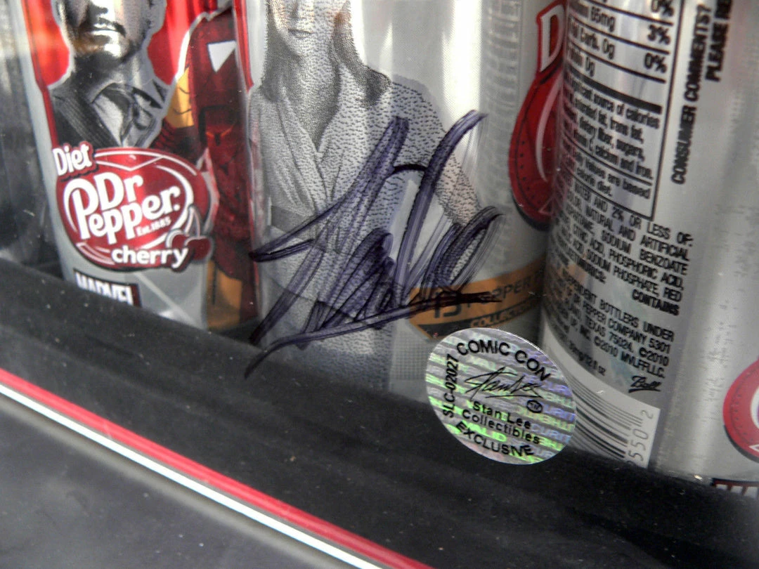 Maybang’s Collectibles Dr. Pepper Iron Man 2 Promotion Can Set Of 14 In Suitcase Signed By Stan Lee