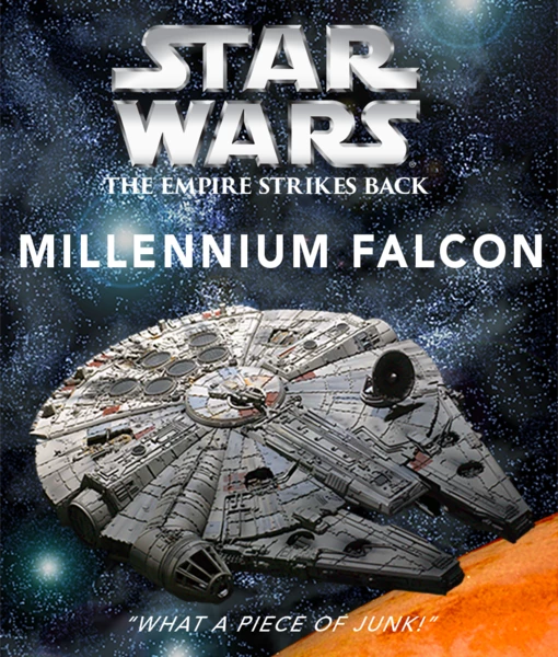 The Millennium Falcon with its Captain, Han Solo, and his first mate Chewbacca, played an important role in many of the Rebel Alliance’s greatest victories over the forces of the dreaded Empire. It was just by a chance meeting in Mos Eisley that they accepted a charter by Obi-wan Kenobi and Luke Skywalker, to pay off a hefty debt to Jabba the Hut. This resulted in the ship and her crew being drawn into the cause of the Rebellion despite Luke Skywalker calling it a piece of junk!