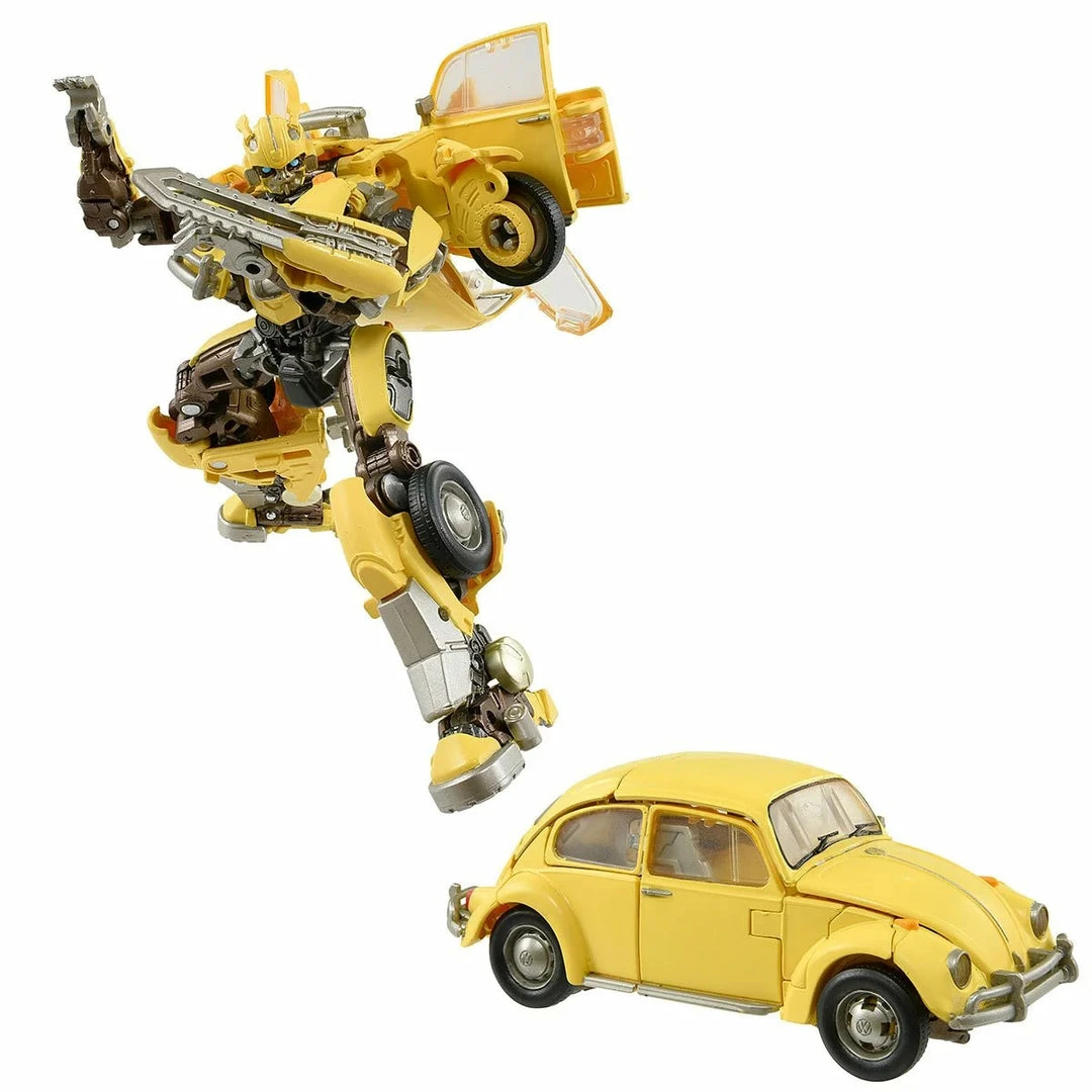 Bumblebee can transform from robot mode to Volkswagen Beetle and features several accessories including its Stinger Sword, Stinger Blaster, and Battle Mask.