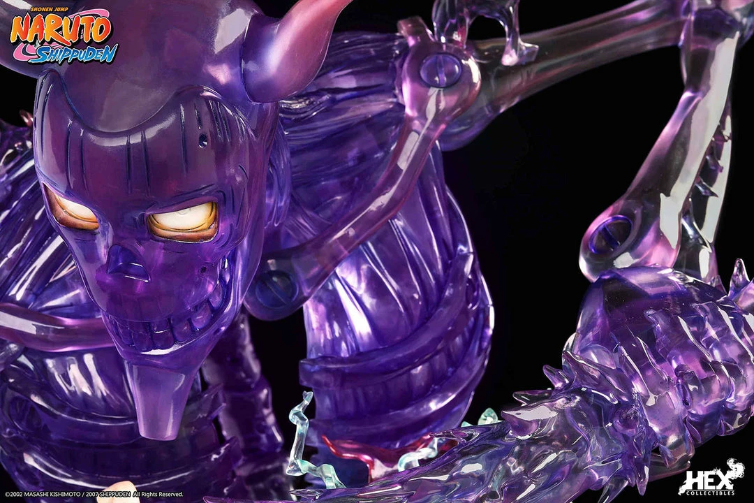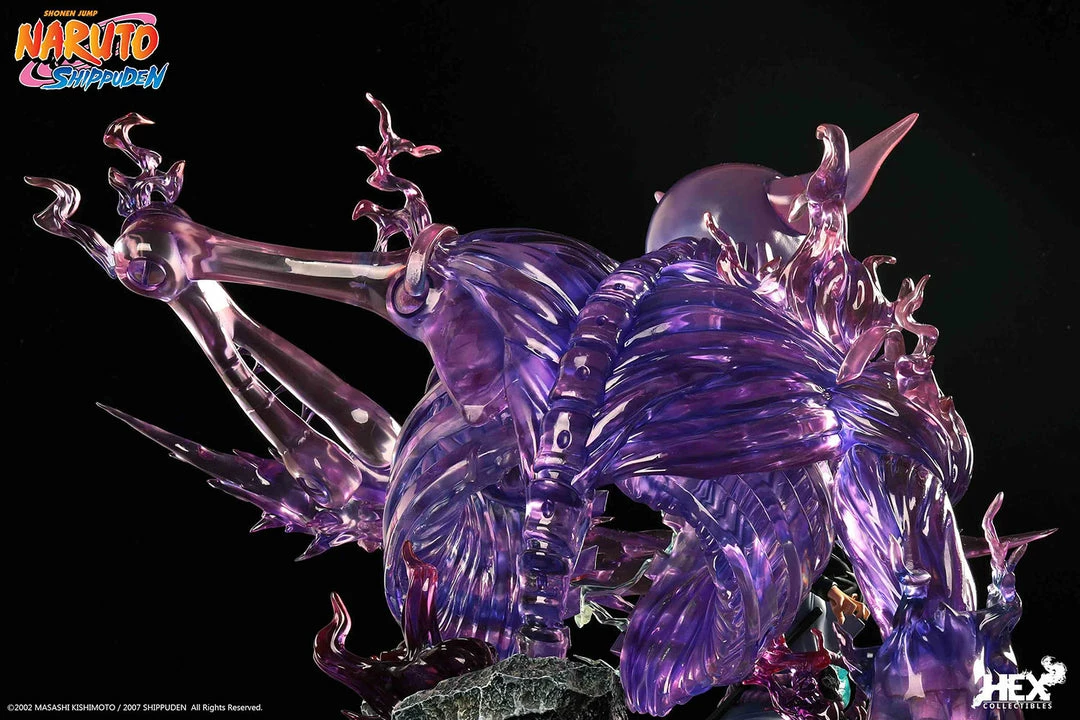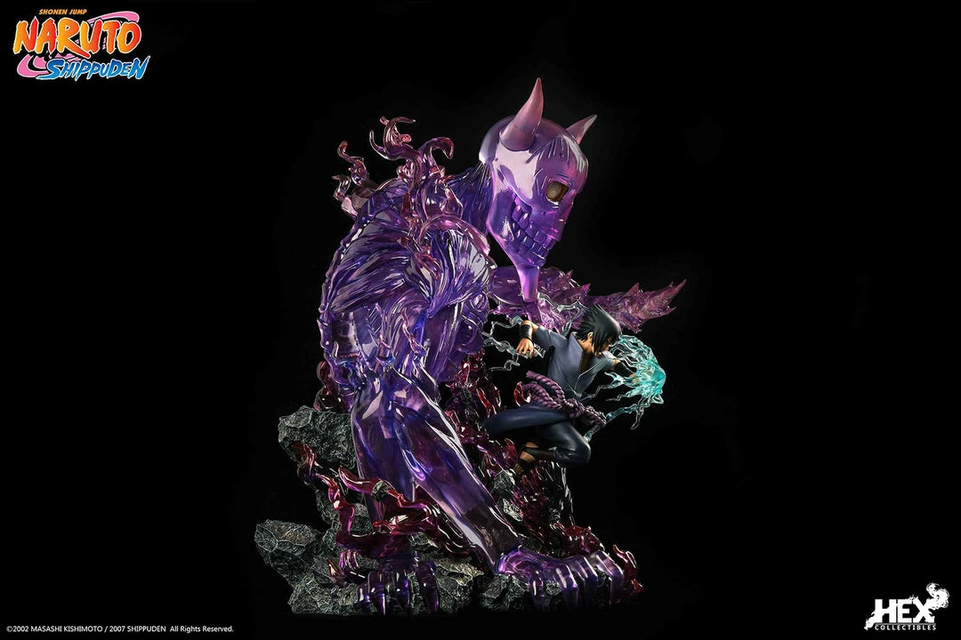 Sideshow and HEX Collectibles present the Uchiha Sasuke 1:8 scale Statue. The statue measures 19.3″ tall. From the scene where Uchiha Sasuke created chaos and caught up with Shimura Danzo, the “Sixth Hokage” who was running away after 4th Five Kage Summit. After Shimura Danzo told the truth about the death of his elder brother Uchiha Itachi, the angry Uchiha Sasuke used his newly evolved Mangekyo Sharingan to show for the first time. The scene of the death battle between the first form of unique Kekkei Genkai pupil “Susano’o” of Uchiha family and Shimura Danzo.