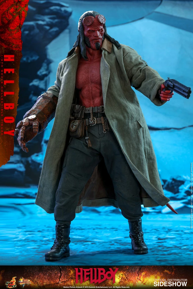 - A newly developed head sculpt with authentic and detailed likeness of Hellboy in Hellboy (2019) with two (2) pairs of interchangeable horns featuring full-grown horns and filed-down horns