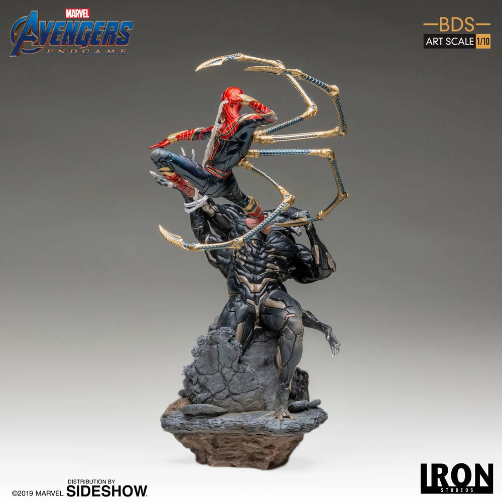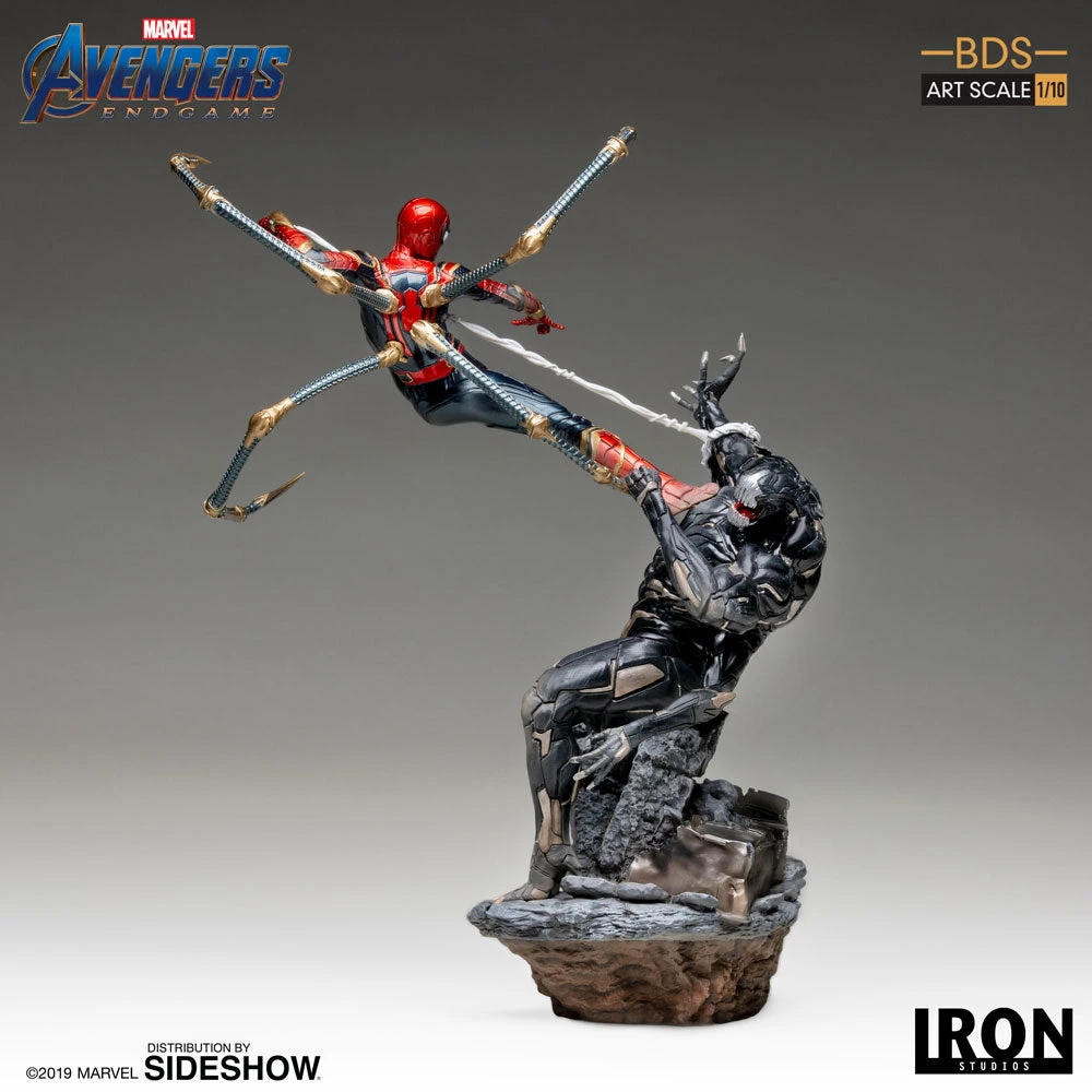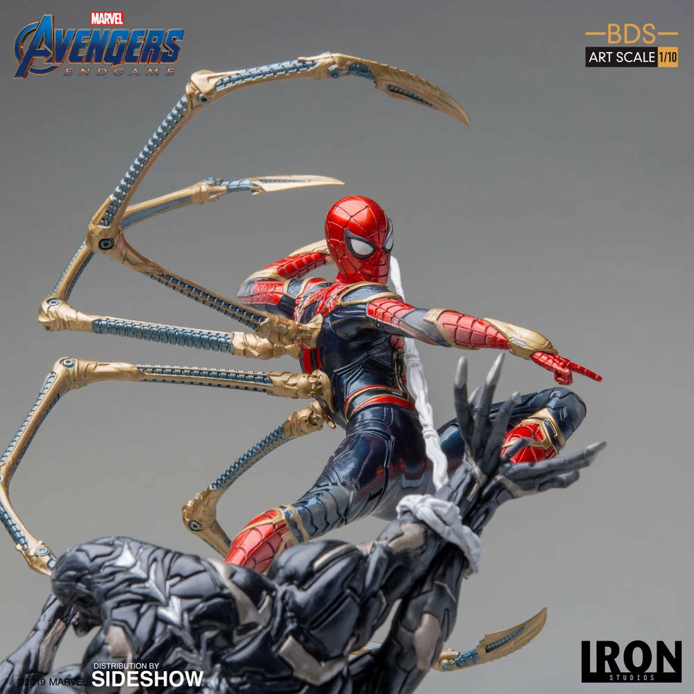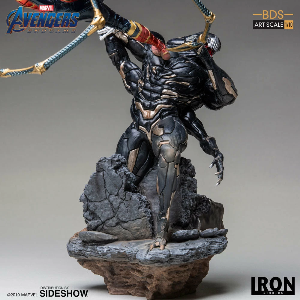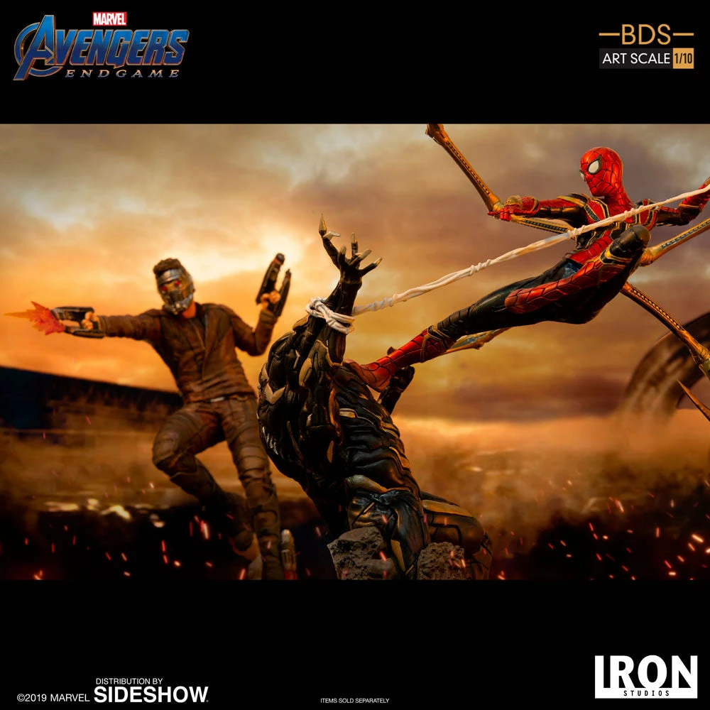 Now, back from the snap, Spider-man helps the heroes of Earth in this 1:10 Battle Diorama Series Art Scale Statue by Iron Studios. This statue features a detailed base including an Outrider armed with tentacles and is part of Avengers: Endgame battle diorama.