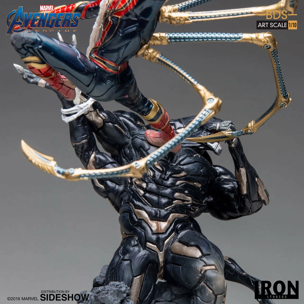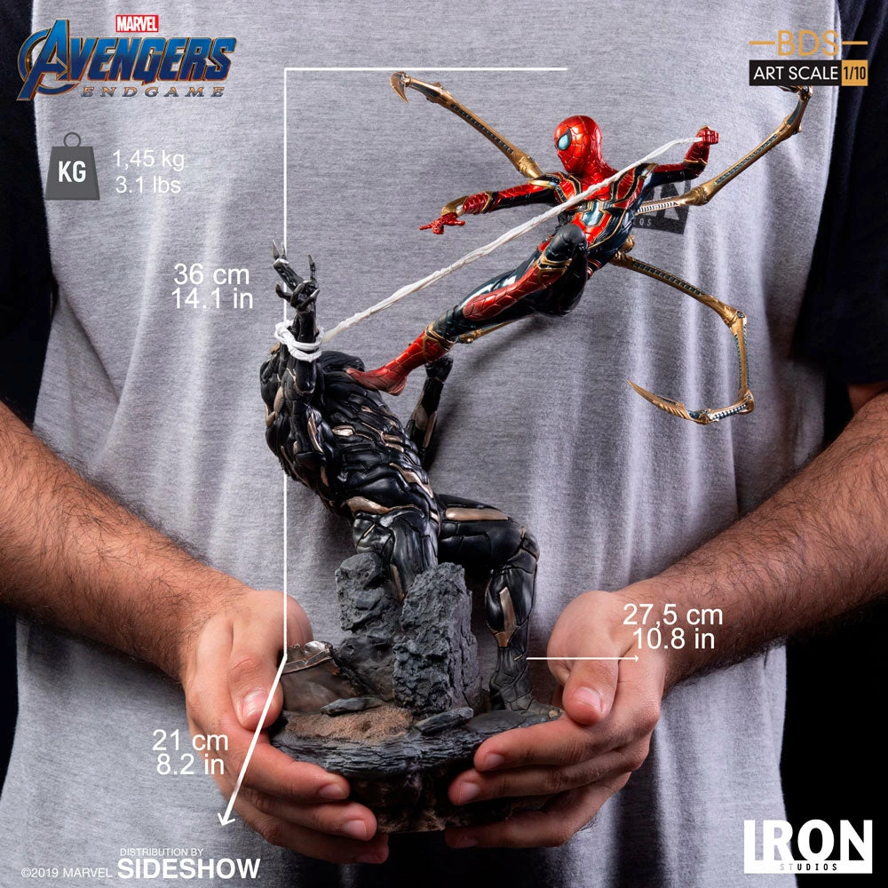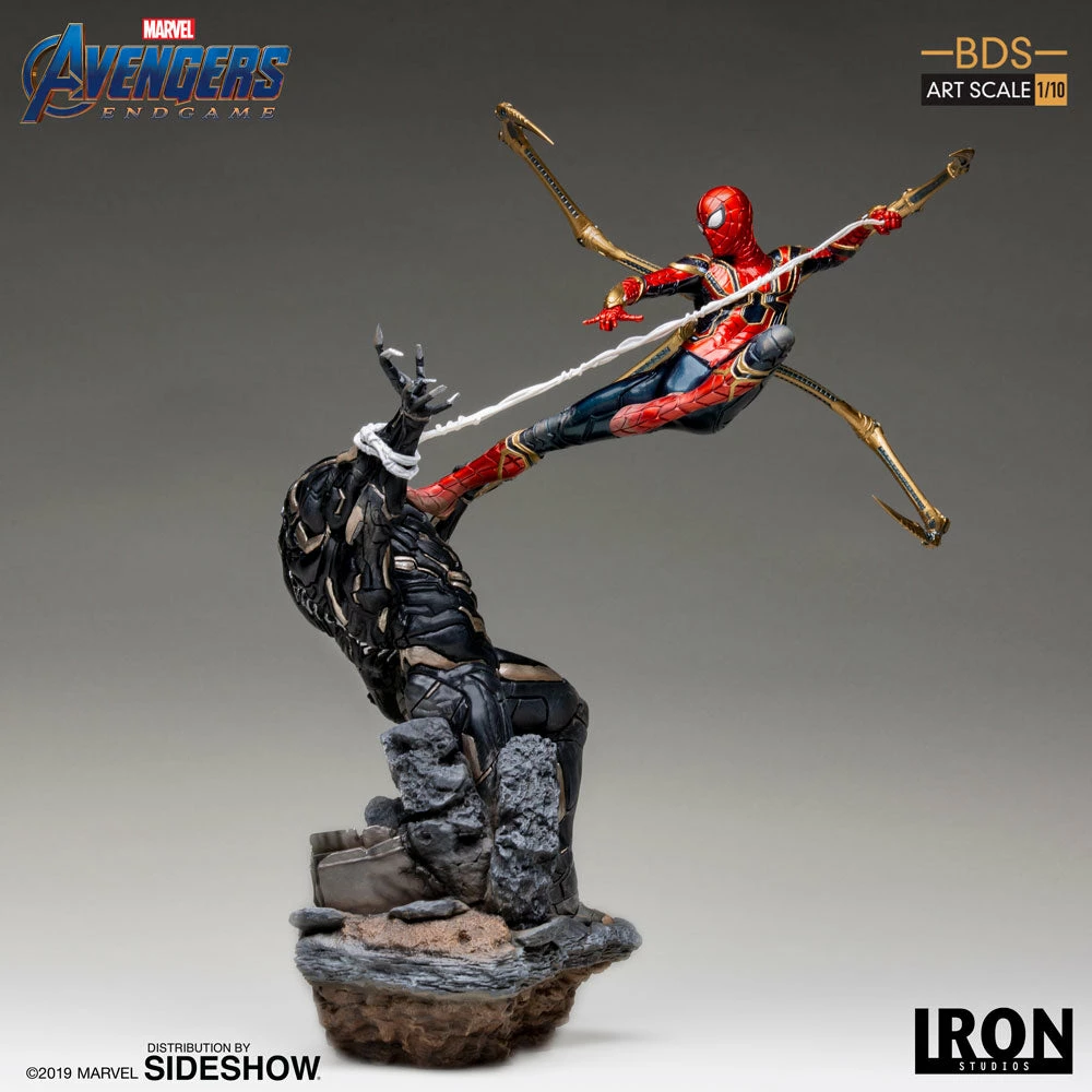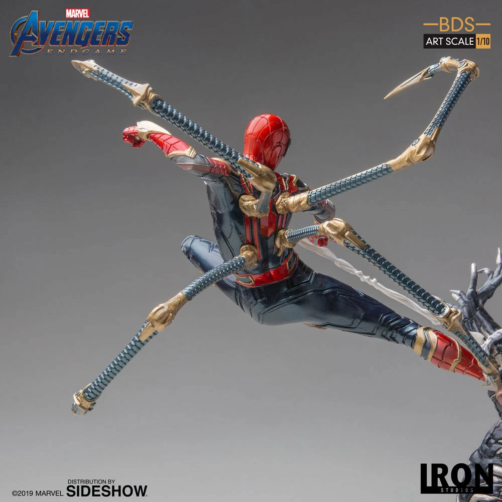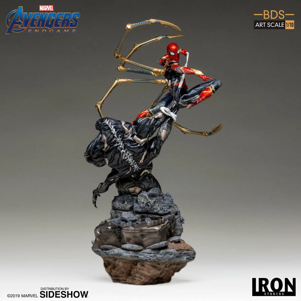 Now, back from the snap, Spider-man helps the heroes of Earth in this 1:10 Battle Diorama Series Art Scale Statue by Iron Studios. This statue features a detailed base including an Outrider armed with tentacles and is part of Avengers: Endgame battle diorama.