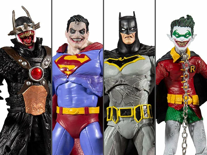 This set of four 7-inch scale figures were designed with McFarlane’s signature Ultra Articulation with up to 22 moving parts for full range and posing. Each DC Multiverse figure includes a collectible art card with artwork on the front and character biographies on the back.