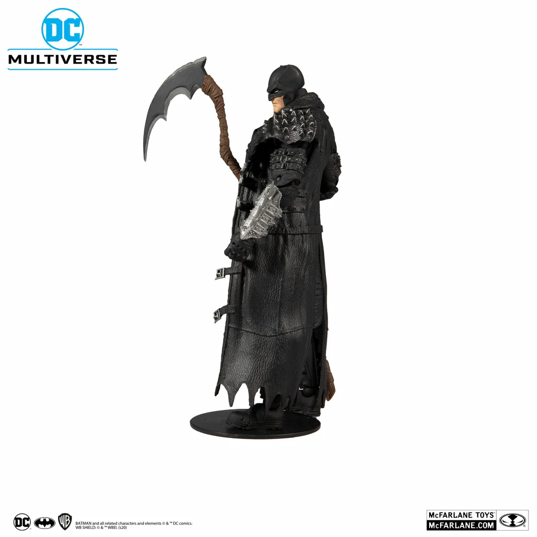 Following the universe-shattering events of Dark Nights: Metal, the Earth is enveloped by the Dark Multiverse and has transformed into a hellish landscape twisted beyond recognition. Willing to sacrifice his own humanity for the greater good, Batman wields an evil Black Lantern power ring, which grants him the power to resurrect the dead. Now, leading an army of zombies and riding a Batcycle made of bones, the Dark Knight wages war against The Batman Who Laughs and his omnipotent goddess, Perpetua, in his mission to save the DC Multiverse!