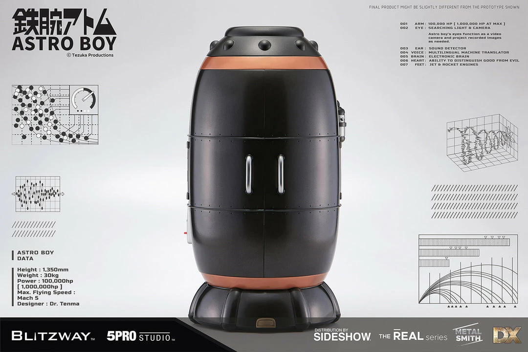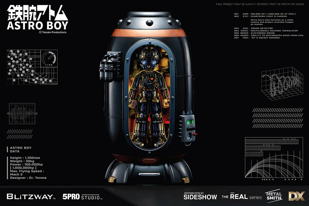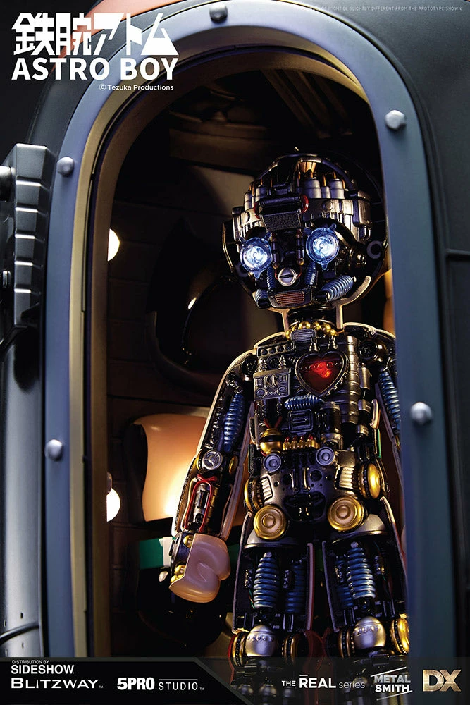 Blitzway analyzed Atom and Osamu Tezuka’s message in animations and comic books, and was able to determine the direction of our statue production. With formidable power hidden behind the cute and sleek appearance, we wanted to express what may look cute at a glance, but is strong with nuclear power. Lightly press the heart-shaped mechanism to make the heart start beating and glow red. Nuclear fusion of the two legs begins to pulsate slowly. Staring at reality, Atom’s eyes gaze with a cold and blue stare.