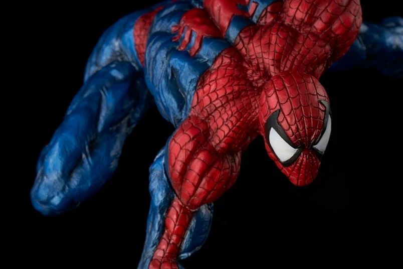 Next in Sentinel’s Sofbinal figure line is Spider-Man, presented in his iconic red and blue suit. Spider-Man is posed in a crouching position, ready to burst into action at any moment.