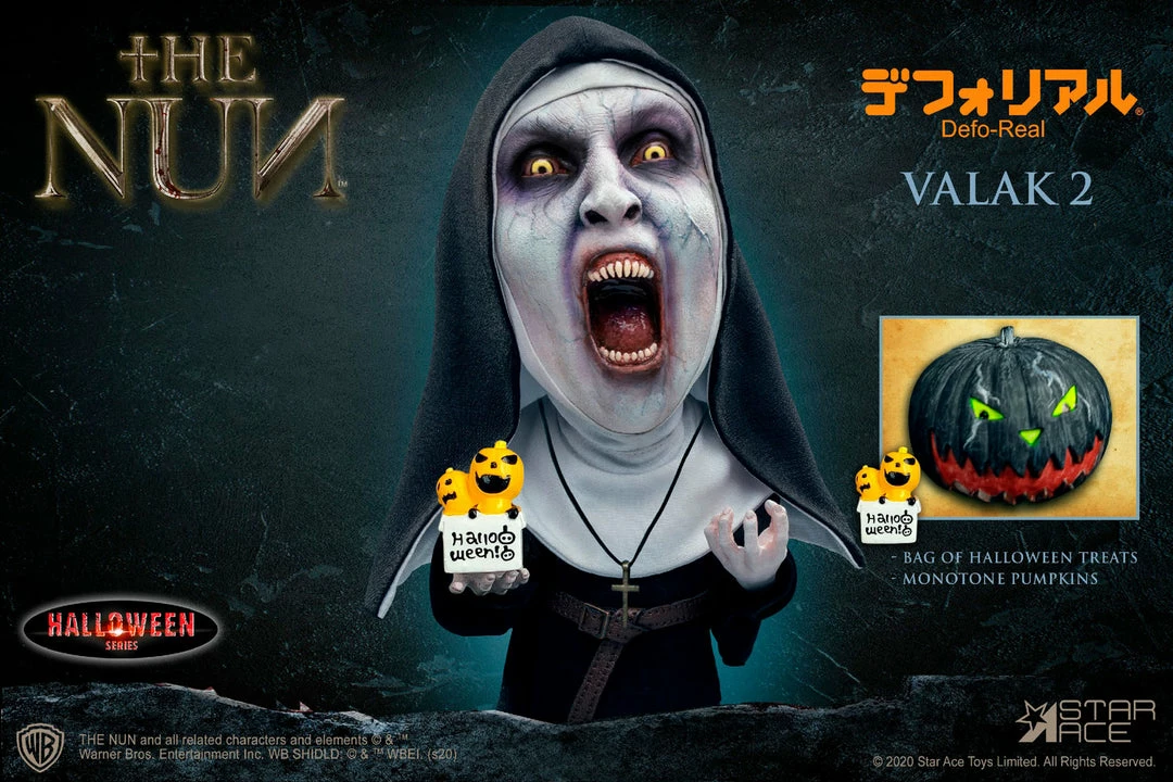 Valak, the demon nun, stalks our nightmares and is even more terrifying on Halloween! This edition features a special bag of Halloween treats and a monochrome jack-o’-lantern. Both versions of The Nun return in these special holiday limited editions.