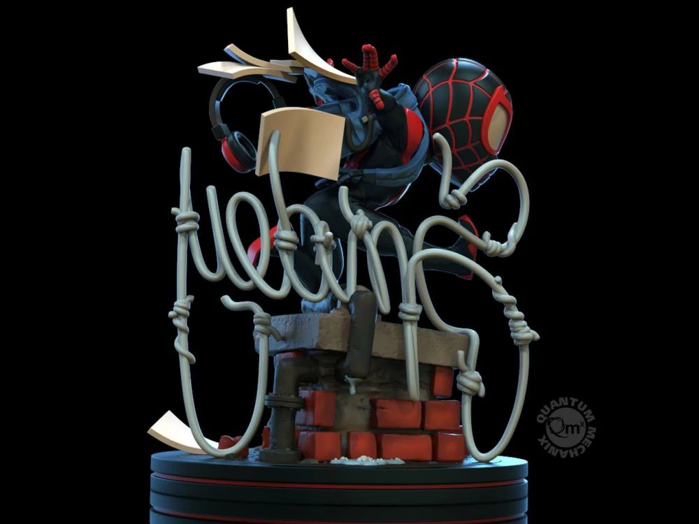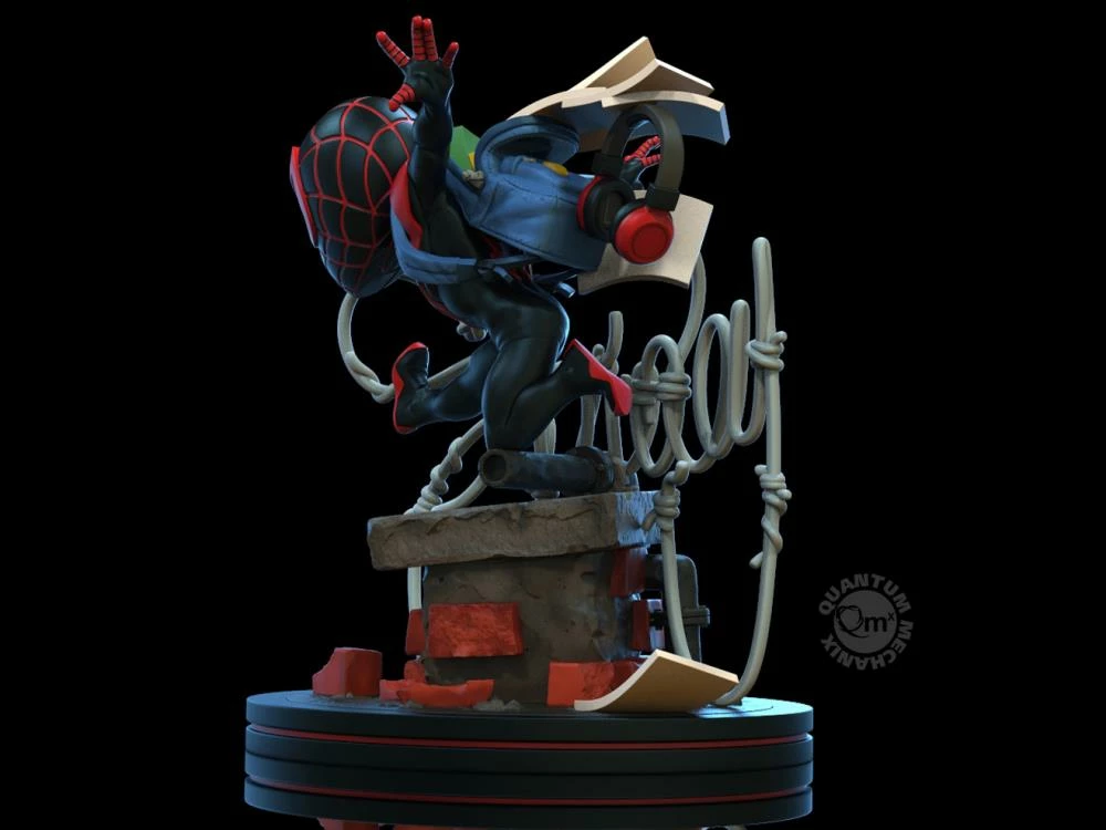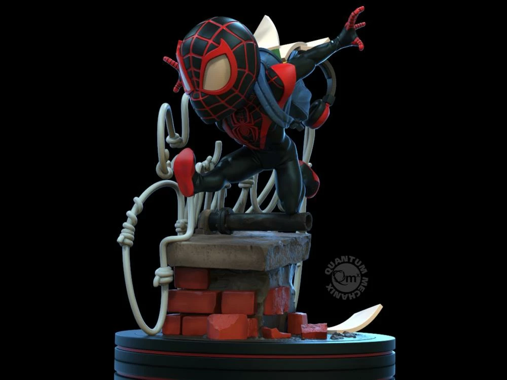 From Quantum Mechanix, New York City teenager Miles Morales sprints across the rooftops of the city as Spider-Man in this Q-Fig Elite Diorama figure. Standing at approximately 4 inches in height, Miles definitely has his own style, evident in his darker costume and his parkour flair. Inspired by the Marvel Spider-Verse comic books, the Q-Fig Spider-Man: Miles Morales Diorama figure is a feat of engineering and creativity never seen before in a Spider-Man collectible.