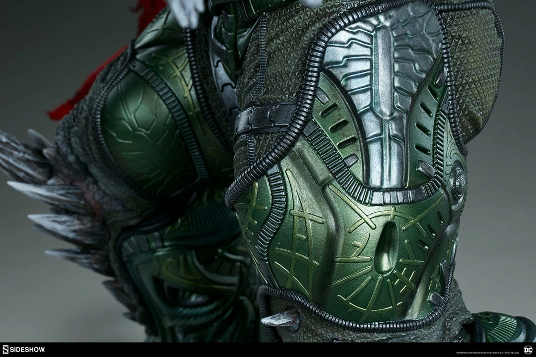 The polyresin Doomsday Maquette also features intricately sculpted green leg armor, as remnants of the beast’s containment suit cling to his hulking physique. His body is covered in countless jagged spikes and rough textures, giving Doomsday his famous otherworldly appearance. Pair the Doomsday Maquette with heroes like Superman, Batman, and Wonder Woman to stage an epic showdown in your lineup of DC collectibles.