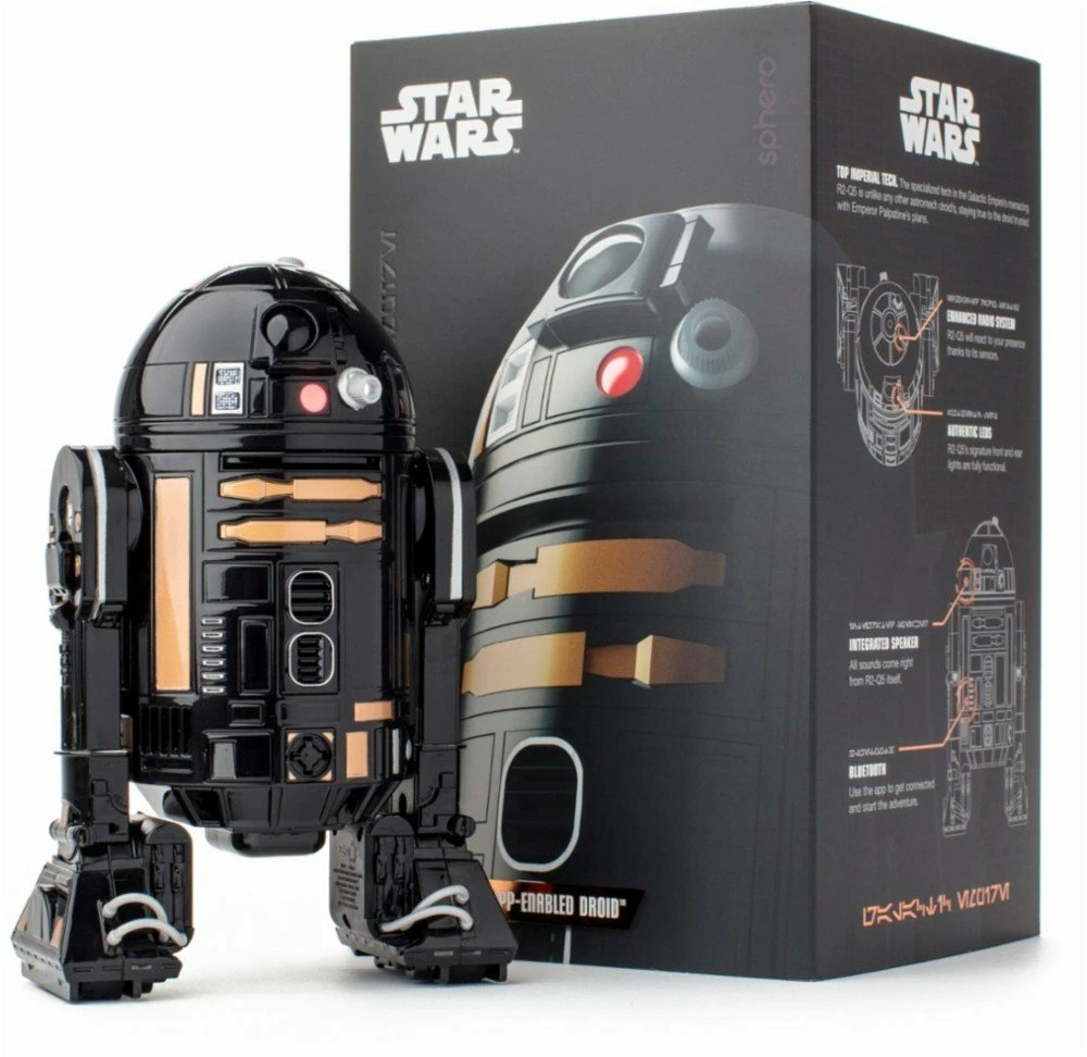 Rule your own Galactic Empire with this Sphero R2-Q5 app-enabled droid. It connects to a smart device via Bluetooth for wireless control and access to its augmented reality feature, and it produces lifelike droid sounds via its built-in speaker. Watch Star Wars films with this interactive Sphero R2-Q5 app-enabled droid and hear him express his reactions.