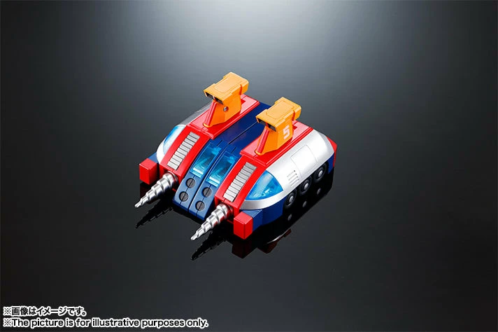 Further expanding the potential of the DX Soul of Chogokin series of diecast figures comes the iconic super robot COMBATTLER V! Standing an impressive 355mm tall, it of course breaks down into all five component vehicles. Not only that, it illuminates and plays key lines of dialogue and music clips from the anime! The set includes a custom display stand that can be used to display COMBATTLER V assembled or in its vehicle forms.