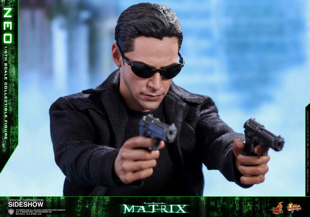 Sideshow and Hot Toys are very excited to present the highly anticipated 1/6th scale Neo collectible figure from the award-winning science fiction film The Matrix. With meticulous and careful craftsmanship, the very stylish sixth scale figure features a newly developed head sculpt highlighting a stunning likeness of Keanu Reeves as Neo in the movie, the signature form-fitting outfit and long coat with sophisticated tailoring, lots of guns including assault rifles, various types of submachine guns, and pistols, the iconic sunglasses, and a specially designed dynamic figure stand!