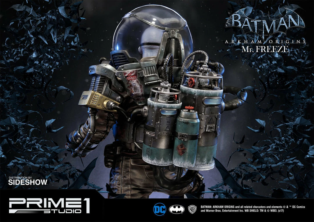 Sideshow and Prime 1 Studio are proud to present Mr. Freeze from Batman: Arkham Origins (Cold, Cold Heart DLC). Victor Fries was a brilliant cryogenicist whose beloved wife, Nora, was stricken with a fatal degenerative disease. Fries placed Nora in suspended animation while he obsessively searched for a way to cure her, but the corporation that funded his research – and Nora’s life – pulled the plug, and triggered an accident that transformed Fries’ body into a cold-blooded form that must always be kept at absolute zero.