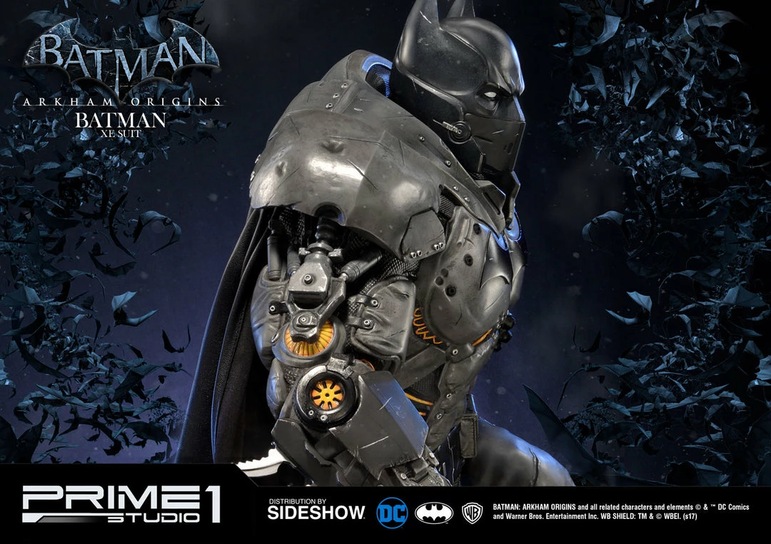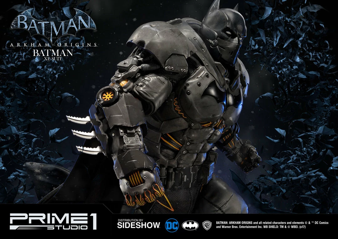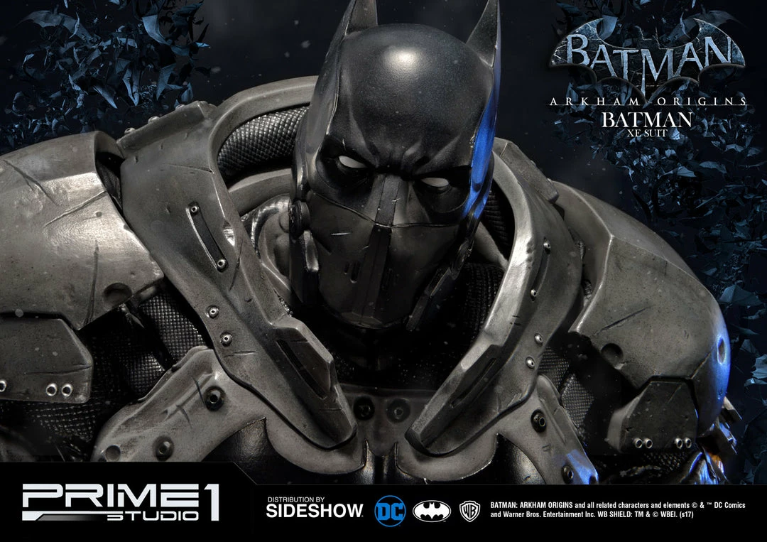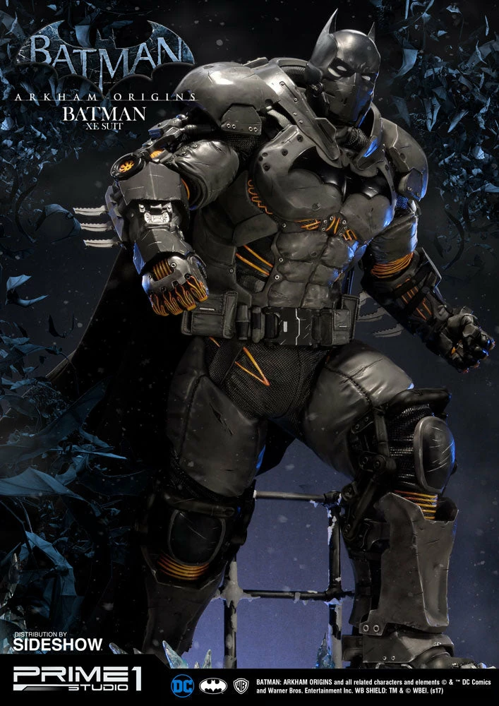 Sideshow and Prime 1 Studio are proud to present the Batman Extreme Environment Suit from Batman: Arkham Origins (Cold, Cold Heart DLC). Batman started out using the Arkham Origins Batsuit but switched to the XE Suit after he realized that he needed a more armored Batsuit to take on the likes of Mister Freeze. It had heating on some of the areas of the suit, it was armed with Thermal Gloves. This special version of his Batsuit not only offered him greater protection but also allowed him to take Mr. Freeze head on as the suit was able to withstand the extreme temperature and break the ice he was able to create. A perfect duo with the Mr. Freeze from Batman: Arkham Origins.