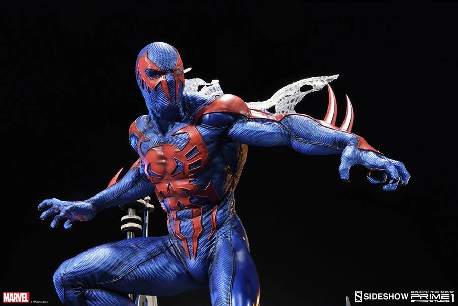 Prime 1 Studio and Sideshow are proud to present Spider-Man 2099. On Earth-928 the year is 2099, Miguel OHara worked as the head of the genetics department for the Alchemax Corporation, specializing in genetic coding and slicing. He toyed with the idea of recreating the powers of the original Spider-Man from years ago. Miguel decided to try to genetically cure himself by rewriting his genetic code from a sample he had taken previously. The results gave him spider-like powers. At this moment, Miguel began fighting crime and the evil corporation Alchemax As Spider-Man.